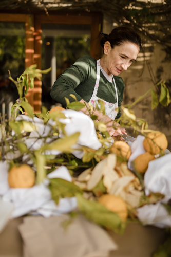Guests gathered on the veranda for the main course, dappled rays of the sunset poking through the wisteria canopy. Not to outdone by the starters, mains consisted of colourful sharing platters of farm-fresh, herby roast chickens, buttered and served with gravy and stuffing, as well as thinly sliced fillet with a flavoursome chimichurri sauce. This was accompanied by side dishes of roasted butternut, grilled cherry tomatoes with fresh basil, buttered garlic beans, and an avocado and butter lettuce salad, with a zesty lemon and olive oil dressing.